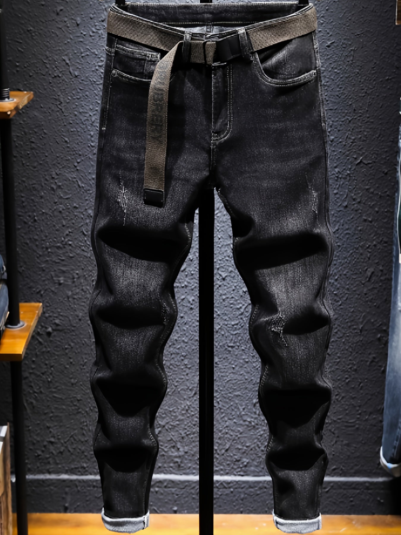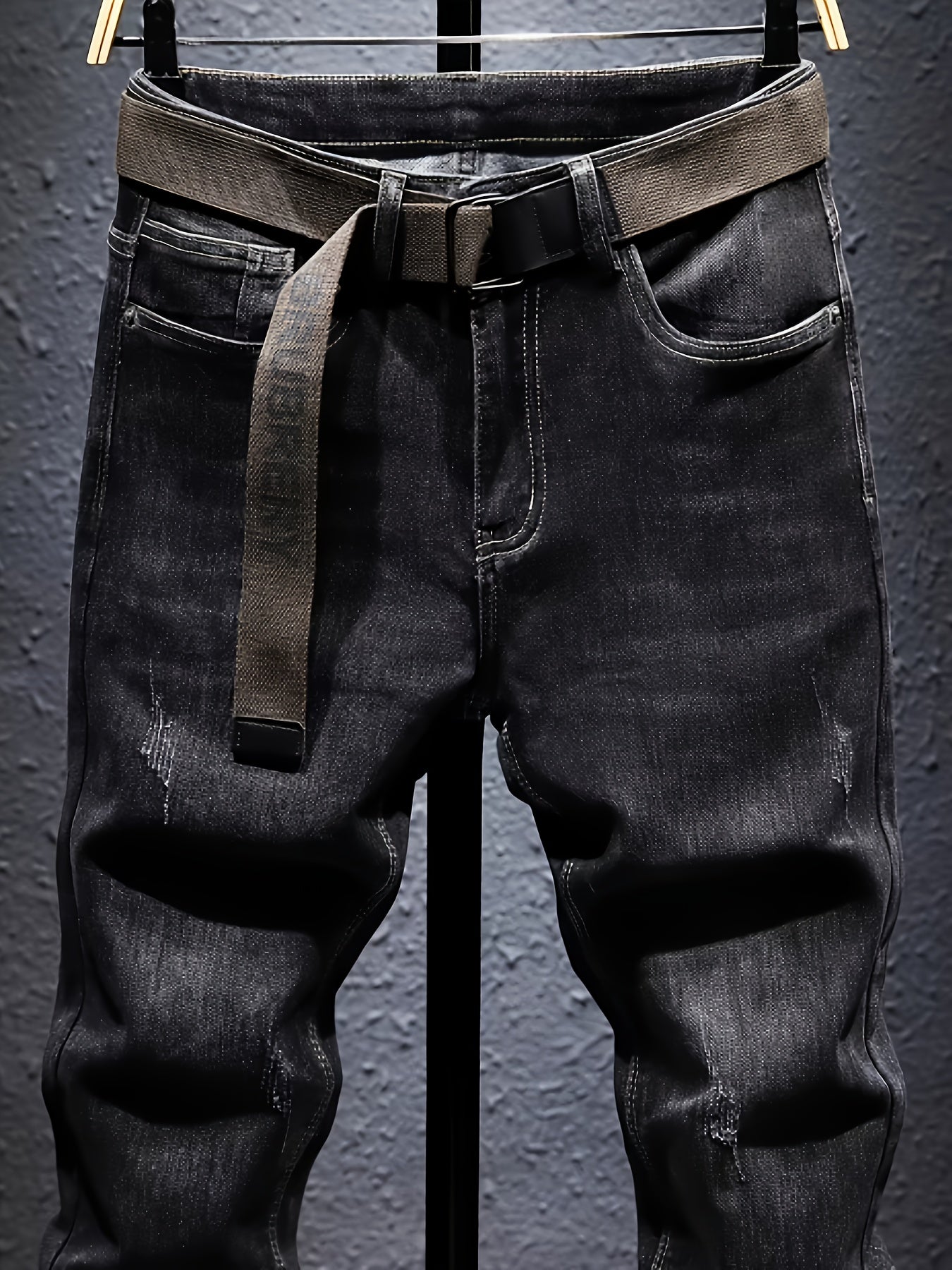 Diese Black Urban Flex Jeans ist mehr als nur eine Hose – sie ist ein Statement. Mit ihrem modernen Schwarz-Washed-Look, den dynamischen 3D-Falteneffekten und dem markanten, langen Gürtel bringt sie genau den urbanen Style, der aktuell überall gefeiert wird.