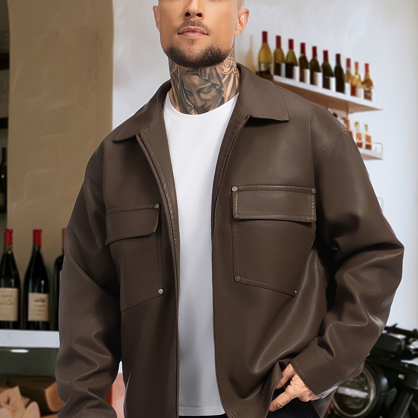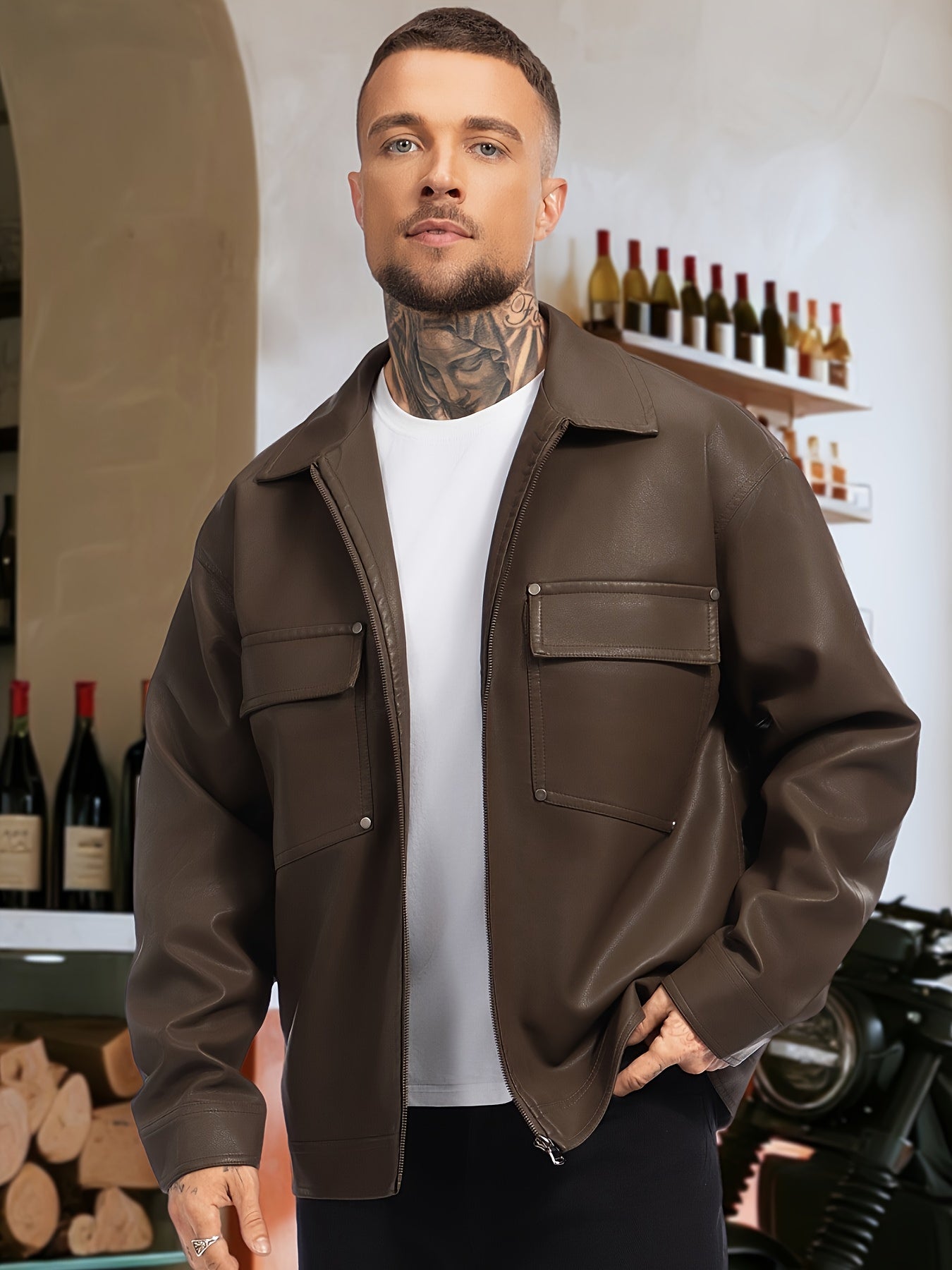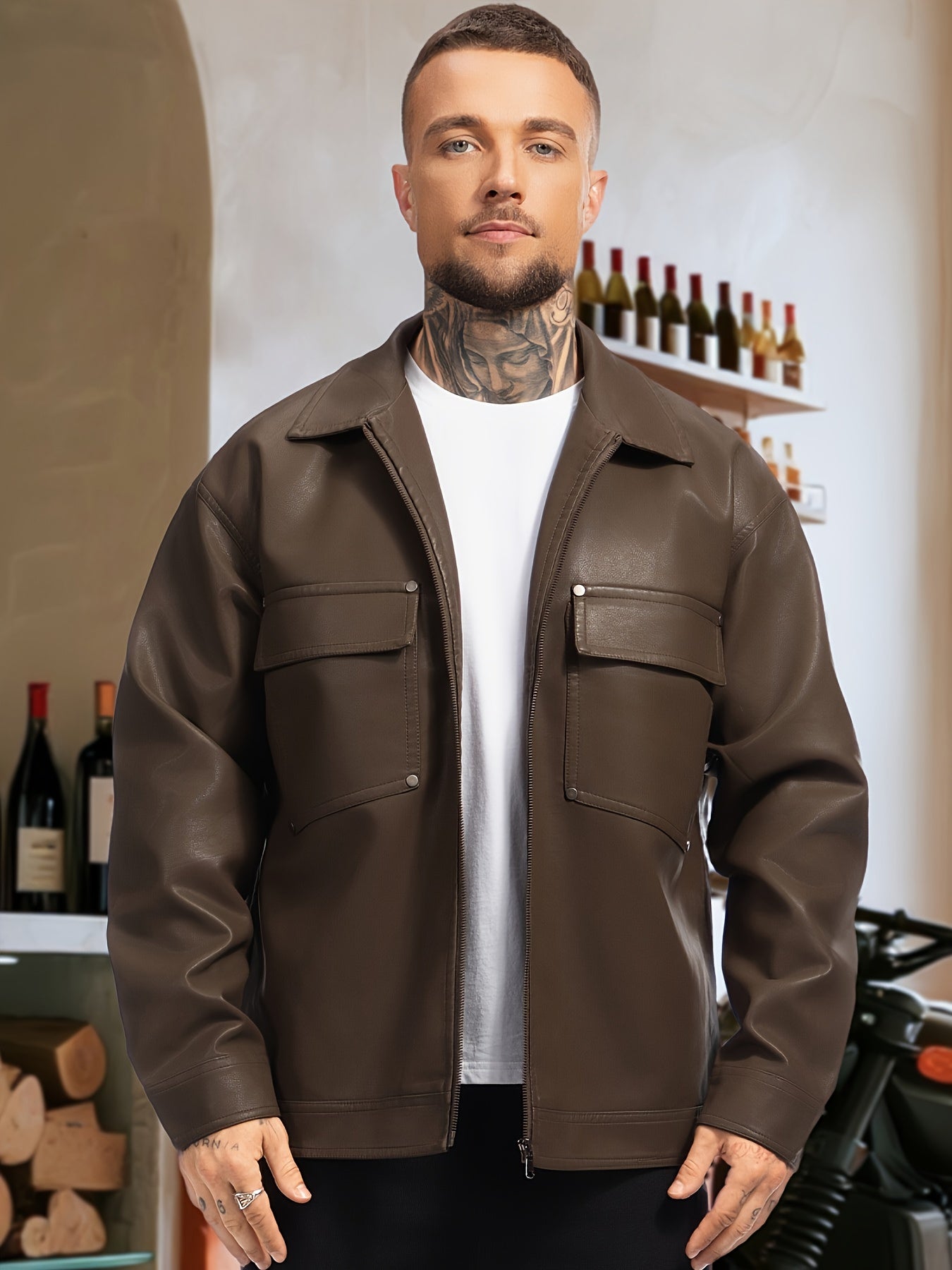 Diese Jacke ist mehr als nur ein Kleidungsstück – sie ist ein Statement. Mit ihrem cleanen, minimalistischen Schnitt und der kraftvollen Präsenz aus hochwertigem Kunstleder verleiht sie dir den perfekten Mix aus Urban Style und maskuliner Lässigkeit.